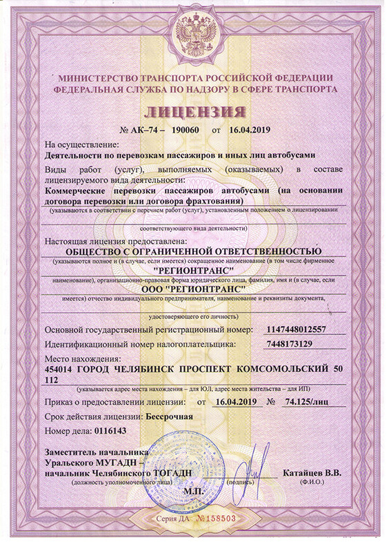 В таком большом городе как Челябинск существует множество частных и коммерческих предложений по предоставлению услуг как городских пассажирских перевозок, так и по межгороду. Однако насколько качественными и безопасными они будут? Сотрудничая с нами, вы можете забыть об этой проблеме. Все пассажиры, перевозимые компанией «Регионтранс», застрахованы в соответствии с Законом № 67-ФЗ «Об обязательном страховании гражданской ответственности перевозчика за причинение вреда жизни, здоровью, имуществу пассажиров».