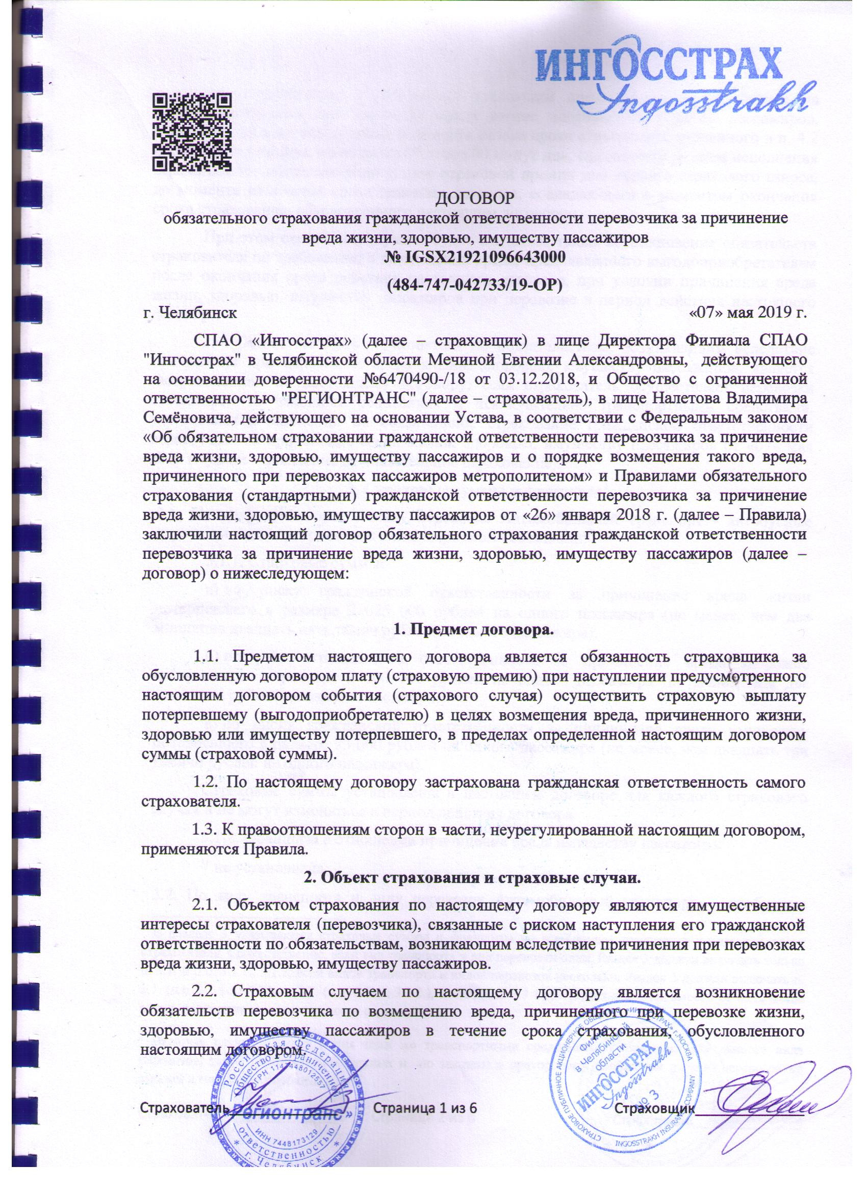 Договор № IGSX22055006262000 от 28.05.2020г. с СПАО «Ингосстрах»